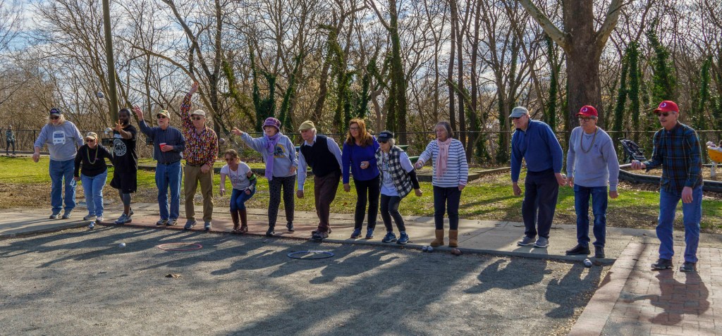 We play at the petanque courts in Chimborazo Playground which is located near the corner of 29th St. and East Grace St., in Church Hill, Richmond, VA. (Click on the blue words for directions).