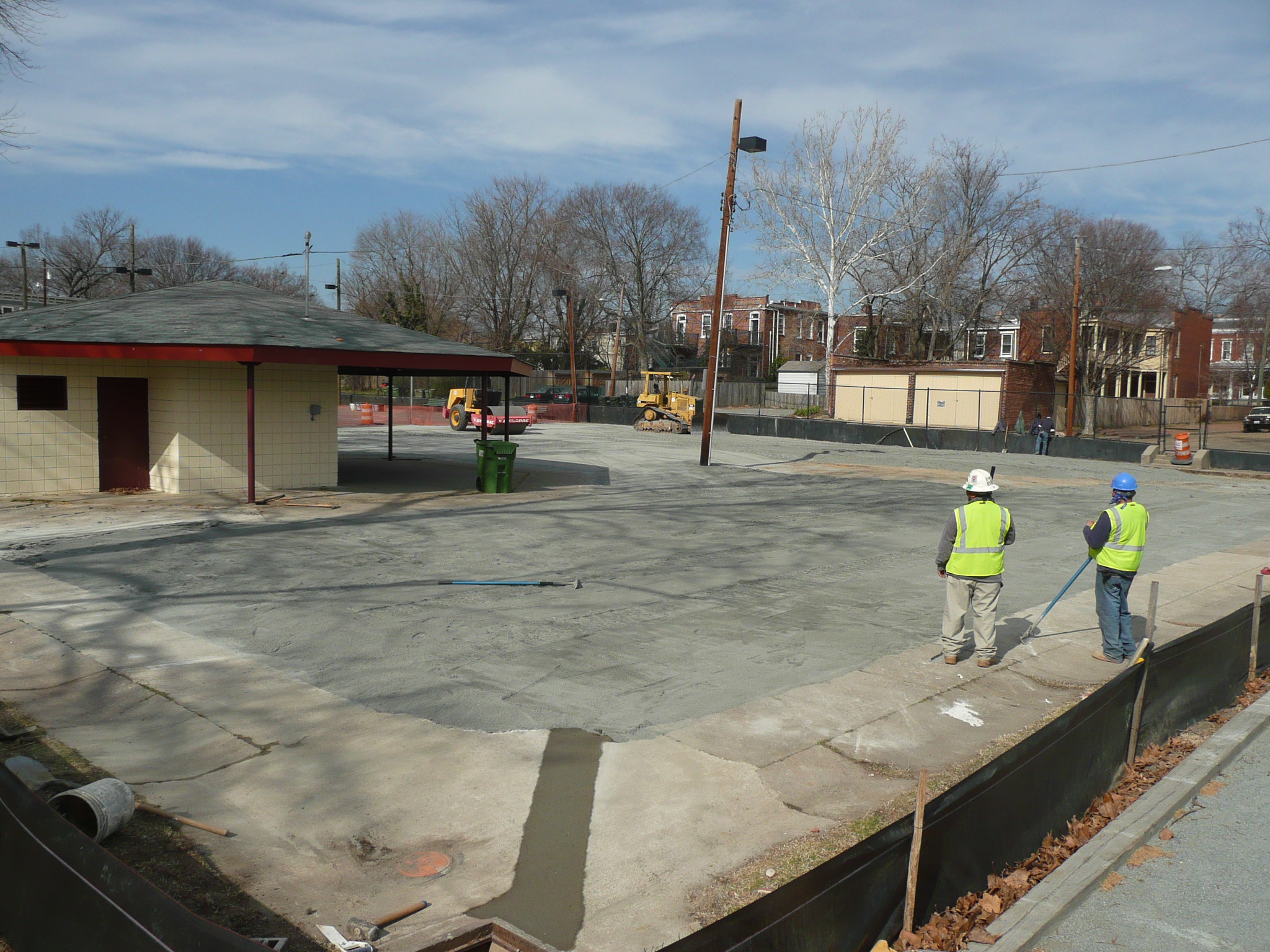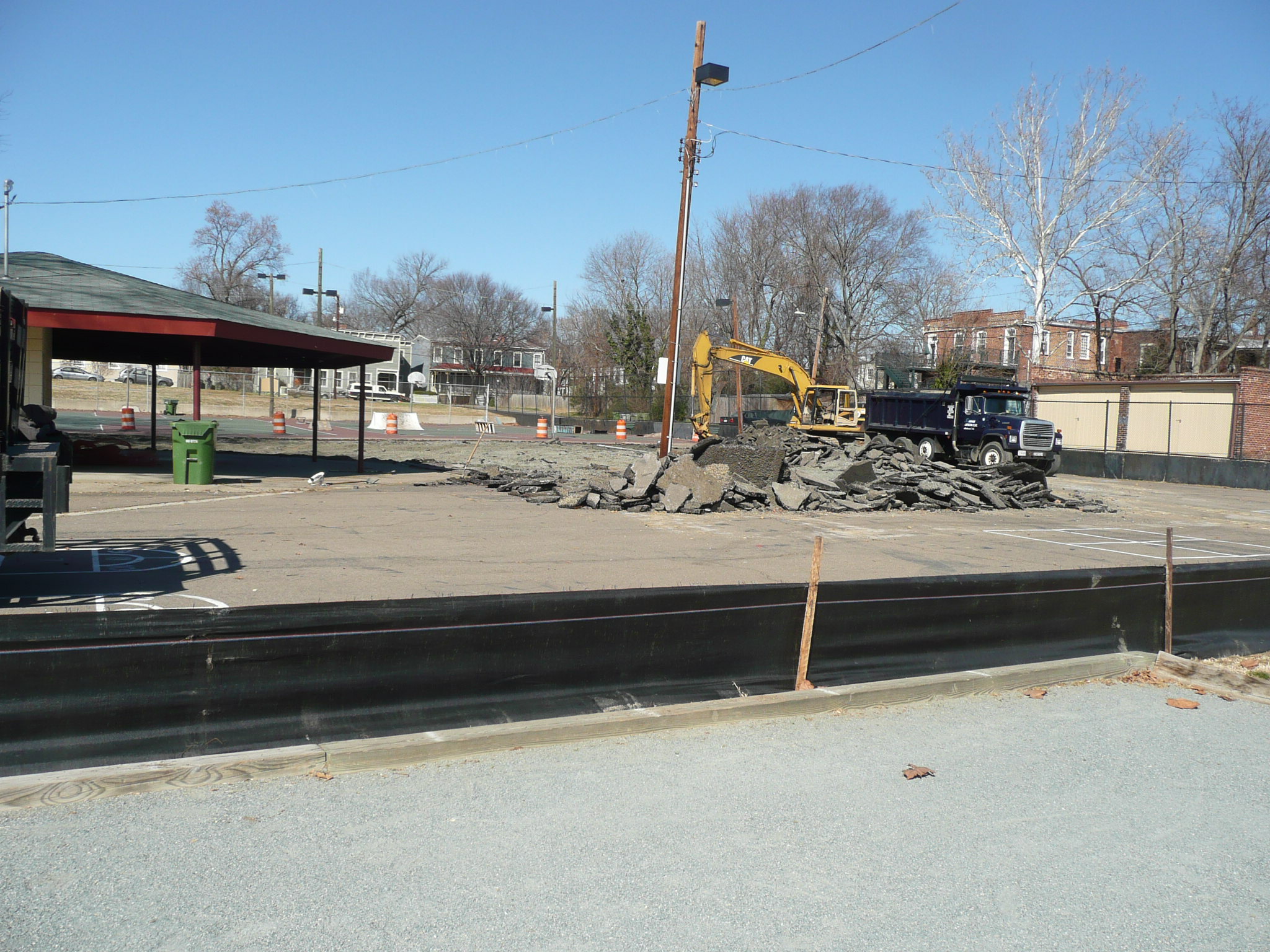 On February 14, 2011 Parks and Rec began removing the blacktop in the playground. With good weather forecast for the next week the work should progress quickly. The old courts are not affected except that there is no standing room on the west side of court #1. Watch this space for photos of the progress.